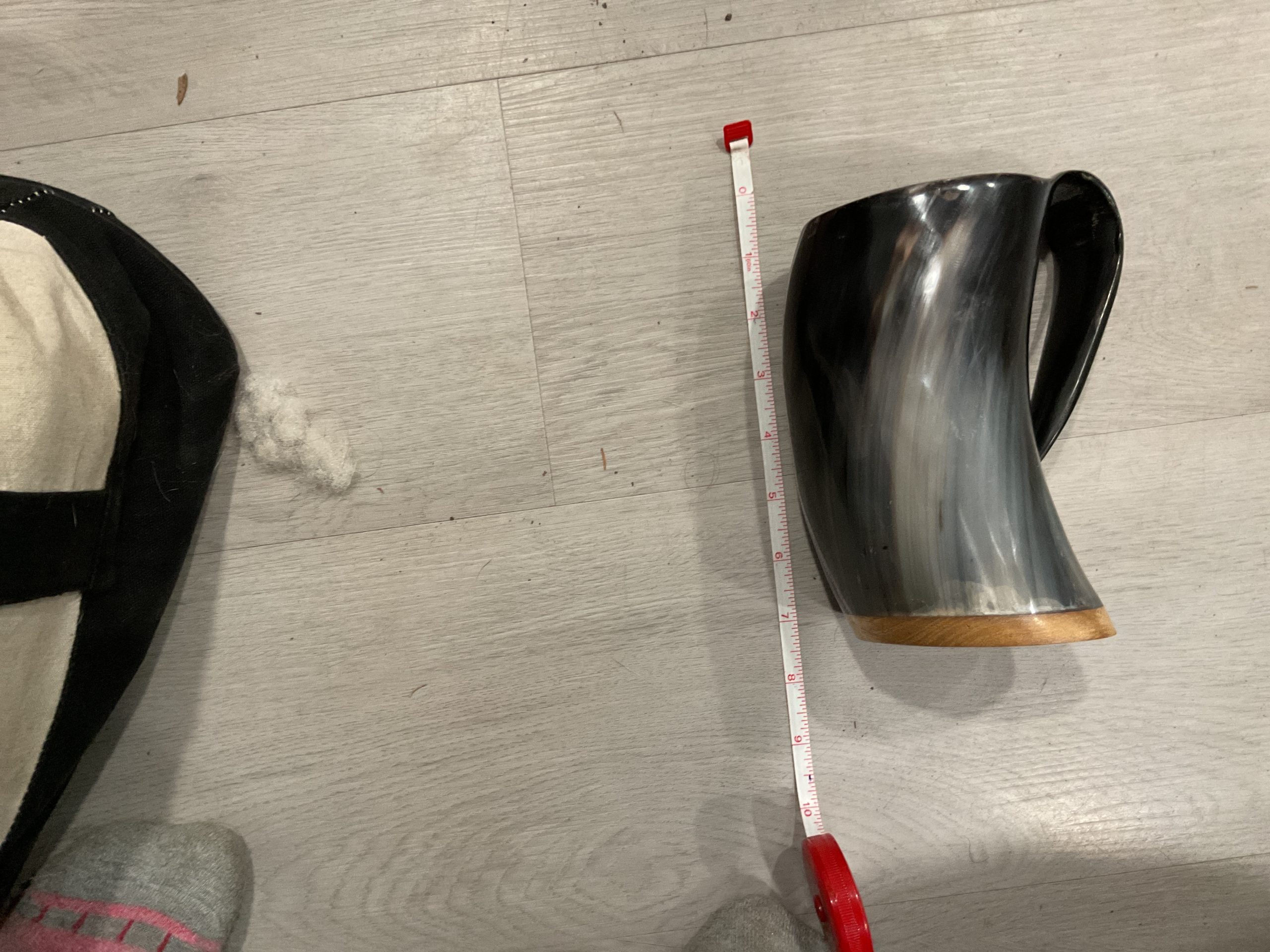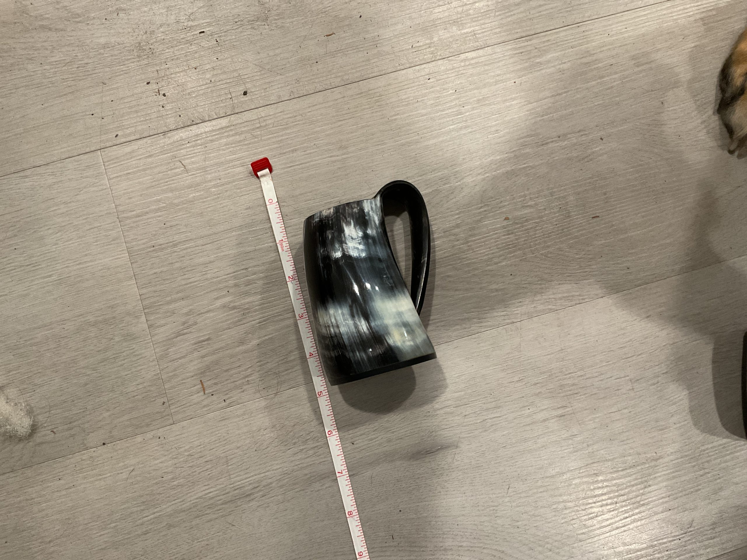 These horn mugs three sizes. The large mug can hold approximately 500 ml of your favorite beverage. The medium sized one is the size of a small coffee cup and the little one is the perfect tasting cup to take along at your party crawls.Each one is distinctly different and the colors range from very pale to jet black with a lot of variation in between. The actual pieces can be significantly bigger or a very slight bit smaller Than the ones pictured. They are food safe and ready to use. You can’t choose specific colors but are free to make requests that we will try to accommodate but no promises. These are a natural material and variations cannot be controlled.